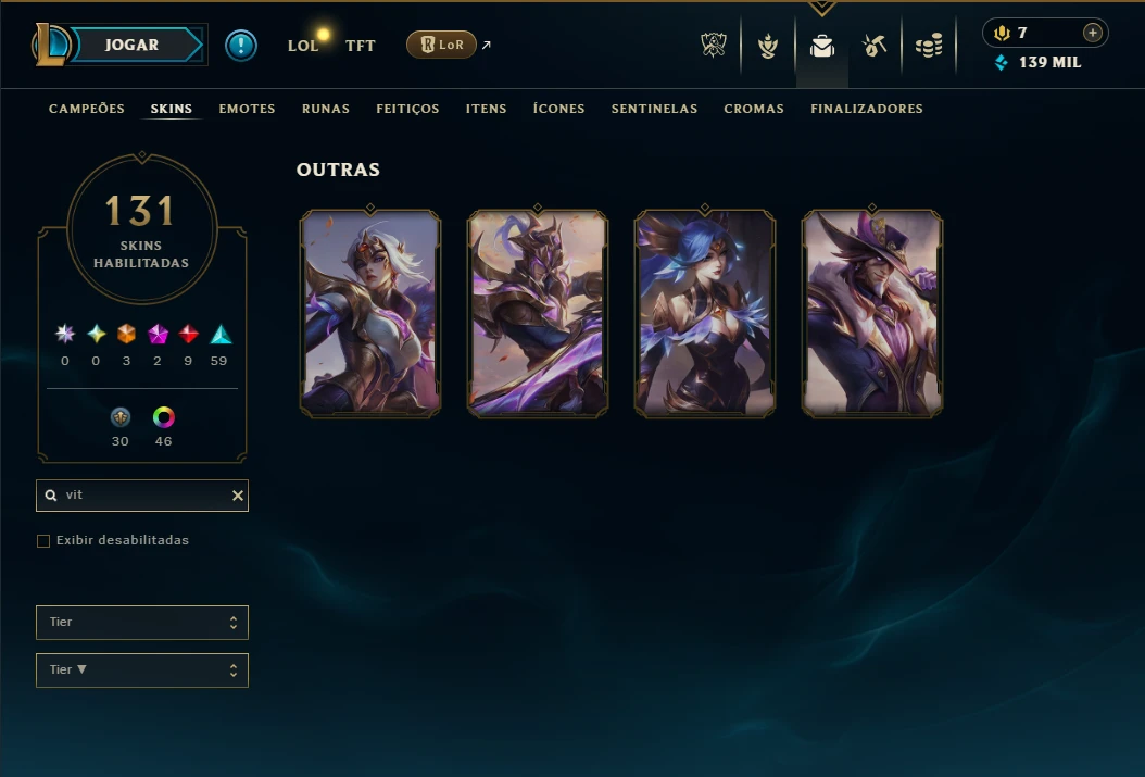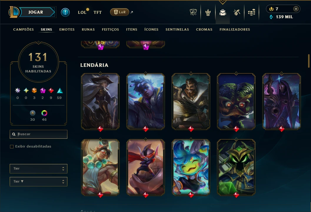 Platina 3 com TODOS os Champs e 131 Skins ( ADC / SUP )