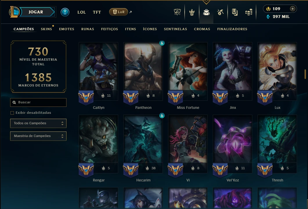 Prata 2 com TODOS os Champs e 157 Skins ( JG / TOP / ADC )