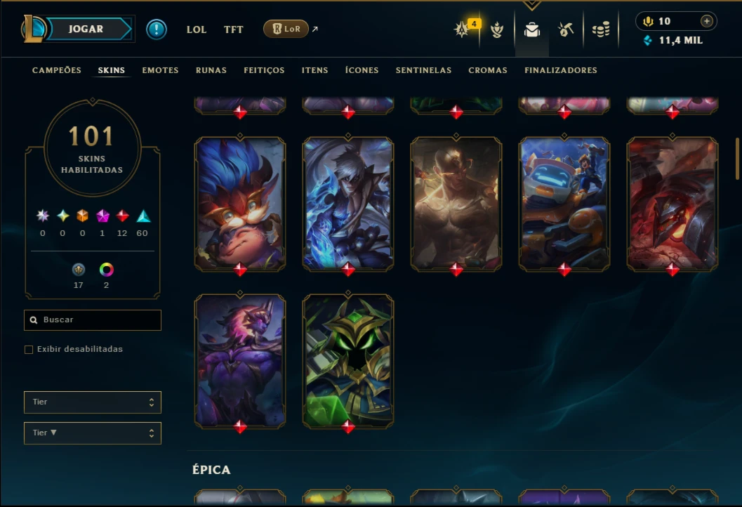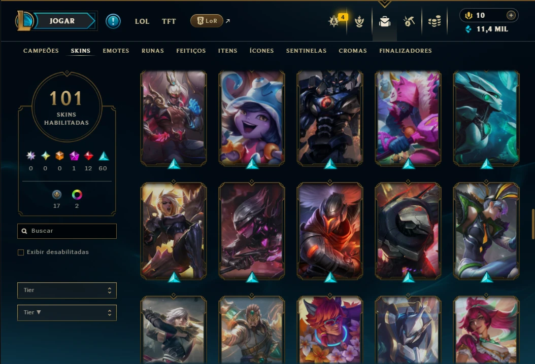 ( MID / JG / TOP ) - Conta Prata 3 com TODOS os Champs e 101 Skins, 11k de EA, 2 Cromas, 160 Ícones, 149 Emotes, 25 Essencias Miticas, 3 Reembolsos e Honra 4.