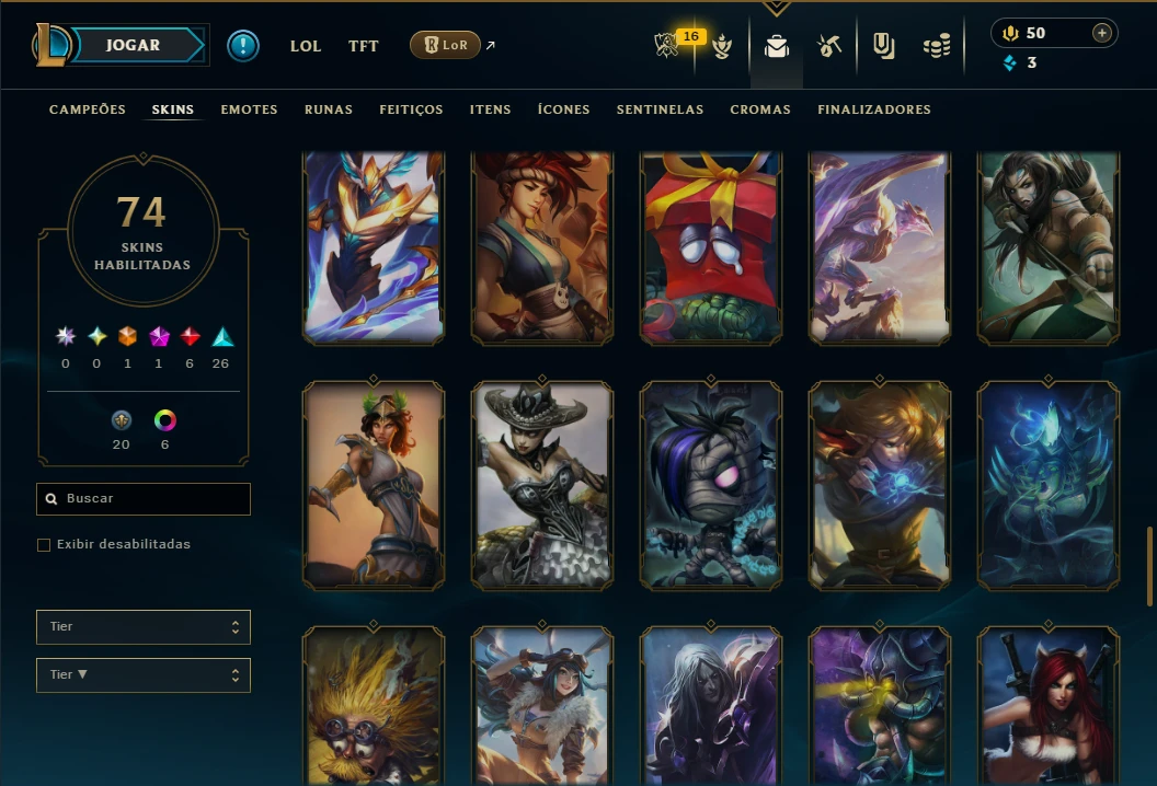 Prata 4 com 120 Champs e 74 Skins ( MID / TOP / JG )