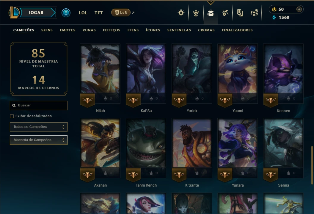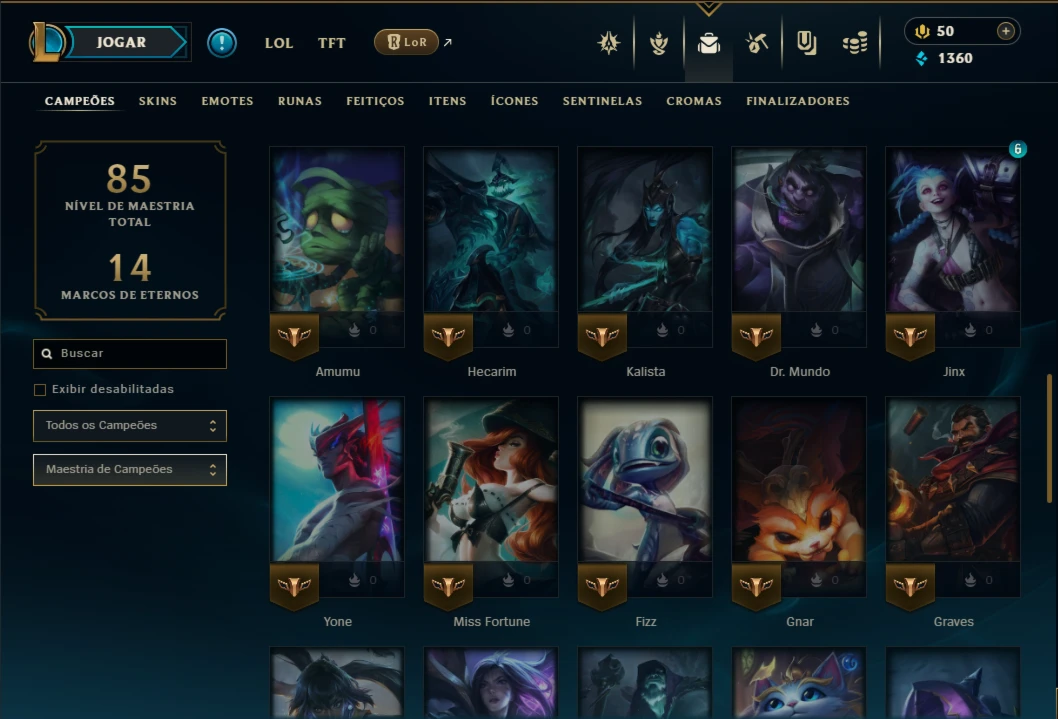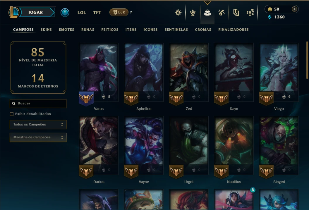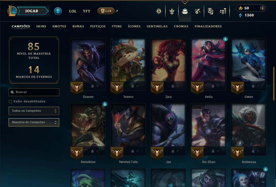 Prata 4 com 50 Champs e 10 Skins - League of Legends LOL