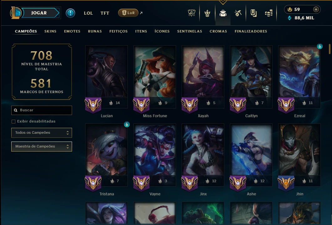 Mais de 5.000 vendas no site – Experiência e Confiança!Prata 4 com TODOS os Champs e 407 Skins ( MONO ADC )