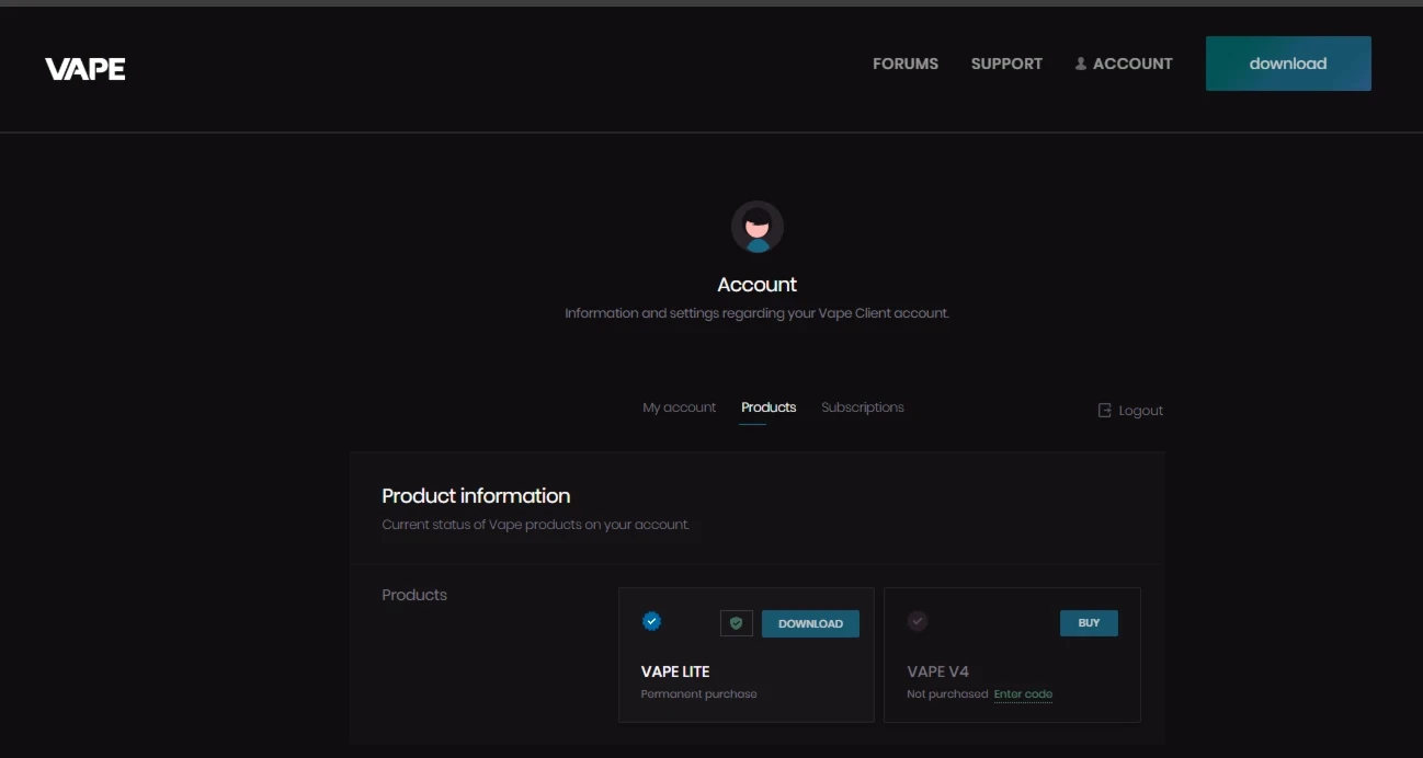 Cheat/Hack Vape Lite Permanente - Minecraft