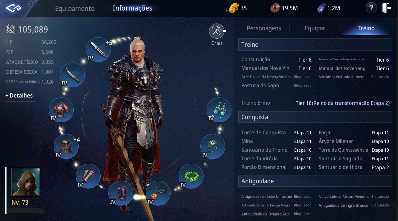 Guerreiro, 73 Lvl, 105K Poder, Pets Epicos, Gemas Epicas - MIR4
