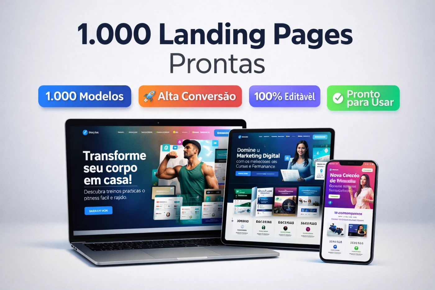 São 1.000 landing pages prontas para usar, criadas com foco total em conversão, design moderno e gatilhos psicológicos que realmente funcionam.