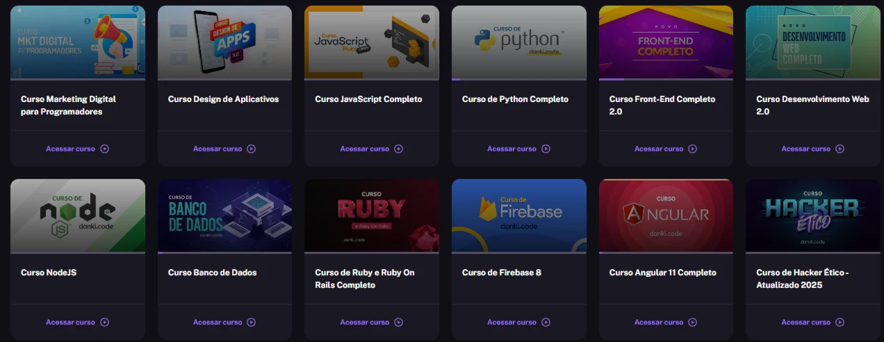 Garanta acesso vitalício a 26 cursos completos na área de tecnologia, todos atualizados com as tendências mais recentes de 2025. Aprenda desde o básico de lógica de programação, front-end, back-end, banco de dados e segurança digital, até áreas avançadas como Web3, Blockchain, Hacker Ético, Desenvolvimento de Aplicativos e Marketing Digital para Programadores.