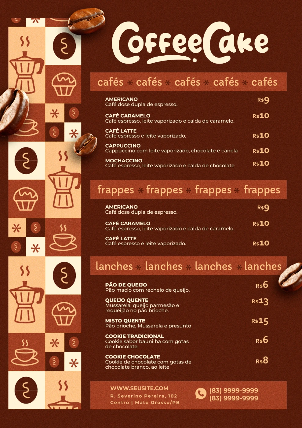 Cardápio para Cafeteria ★(PSD|PREMIUM|MODERNO)★
