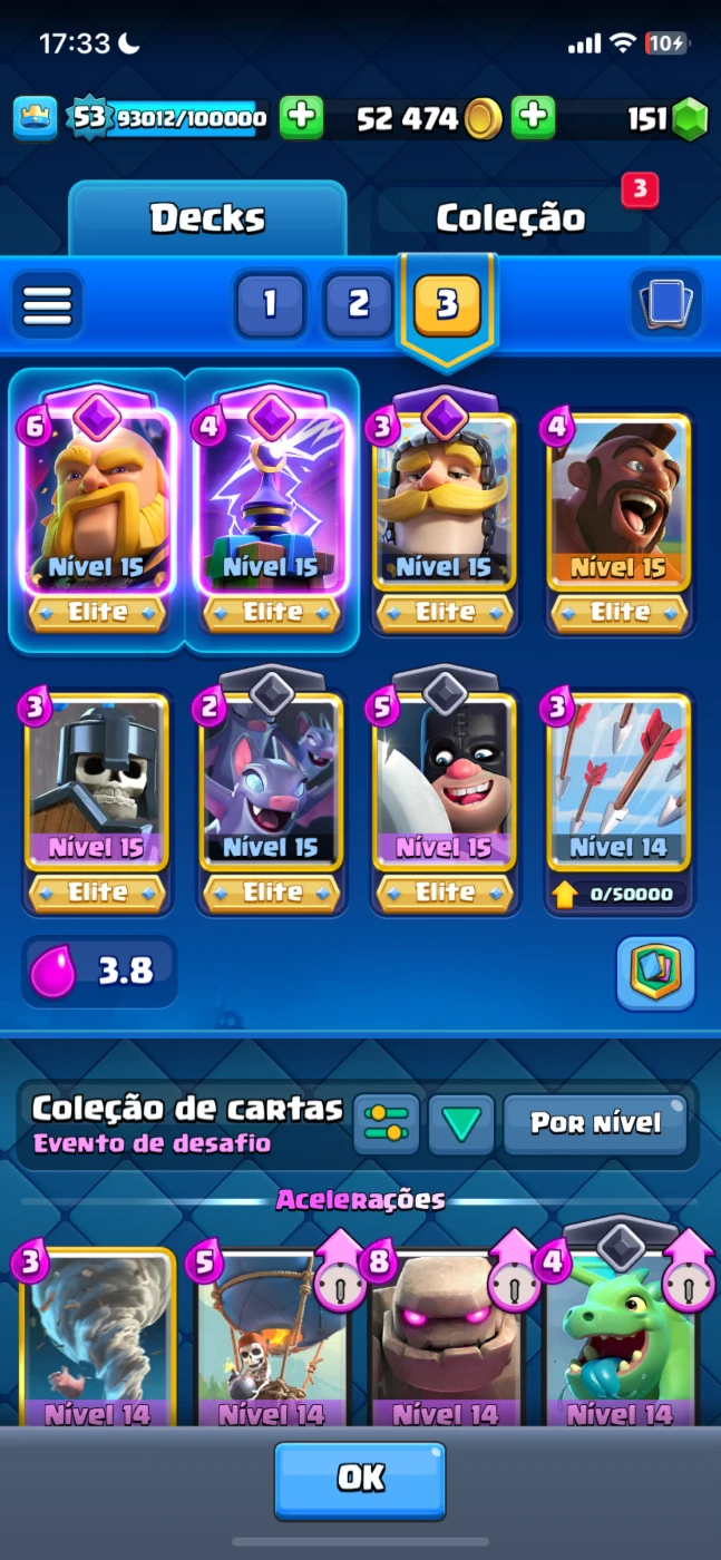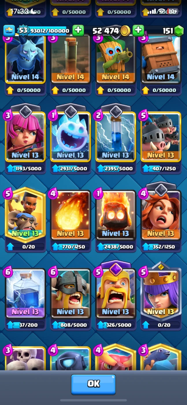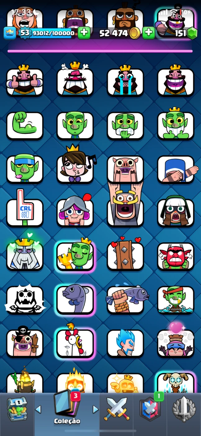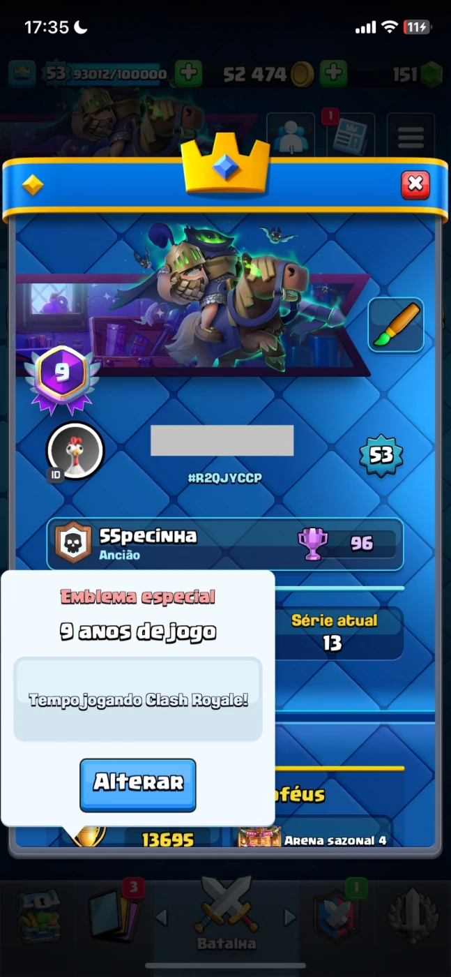 Conta de Clash Royale 9 anos de jogo evoluções e elites 90 emblemas 56 emojis 120/121 cartas 13695 troféus 2 primeiros passes do jogo lvl 53 Motivo da venda: não estou mais jogando