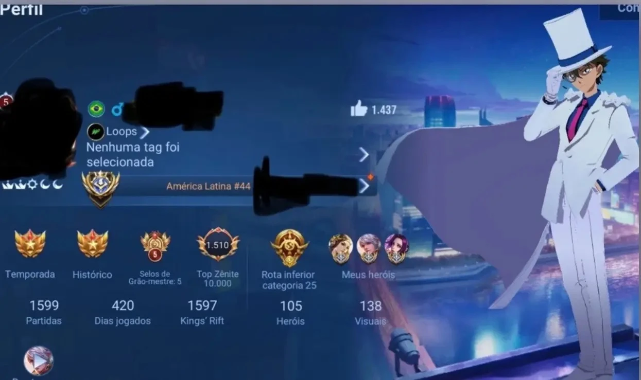 CONTA COM SKIN DO LU BAN E MARCO POLO E OUTRAS SKIN MAIS DE 130+, ATUALMENTE NO ELO MESTRE POIS TO SEM TEMPO PARA JOGAR, ELO MÁXIMO ALCANÇADO E LENDA.