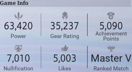 Main: Magiblade Level 60 with 63k power, fully optimized for high-level PvE content. The account reached Legend in Season 2 PvP and finished Season 1 ranked Top 1 on the server.