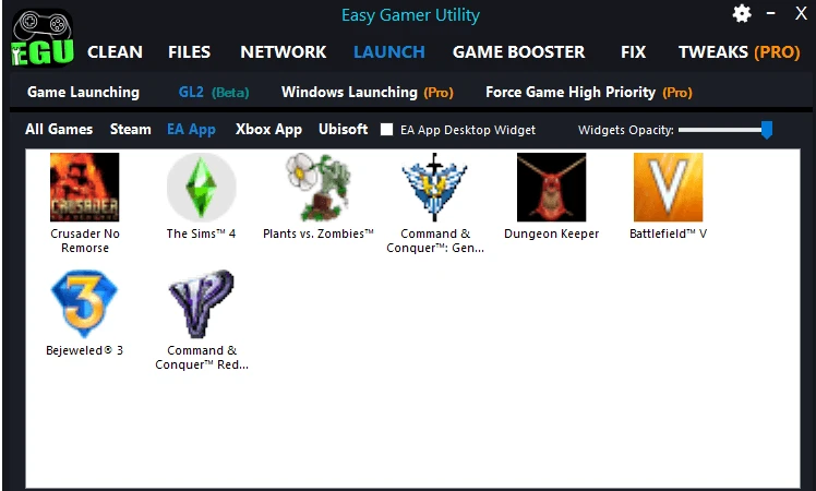 Com uma interface simples e intuitiva, o Easy Gamer Utility Pro faz uma limpeza profunda no sistema, corrige falhas comuns, elimina arquivos inúteis e aplica ajustes avançados para deixar seus games rodando muito mais rápidos, leves e estáveis.