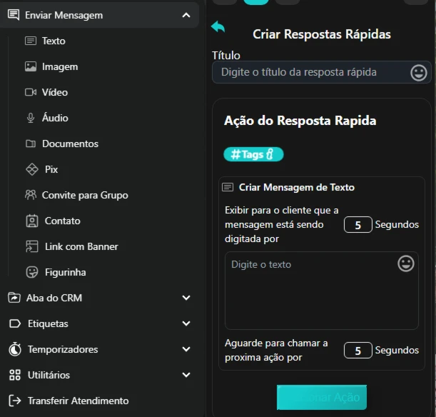 Você configura as opções e etapas do fluxo, e o atendimento avança naturalmente com um simples clique nas escolhas que você definiu.