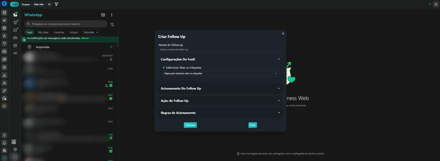 Automatize seu [conteúdo removido] , agende reuniões, faça follow-up de contatos e envie mensagens de voz e imagem — tudo em um único fluxo rápido, seguro e integrado ao [conteúdo removido] Web.