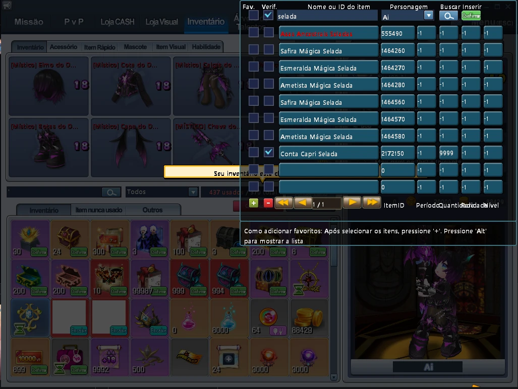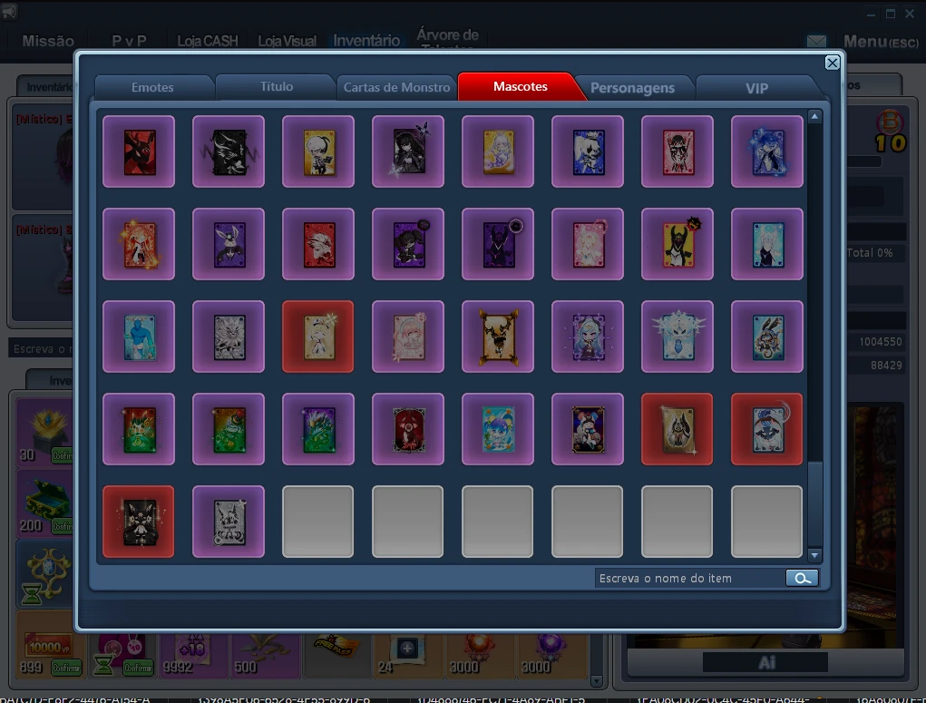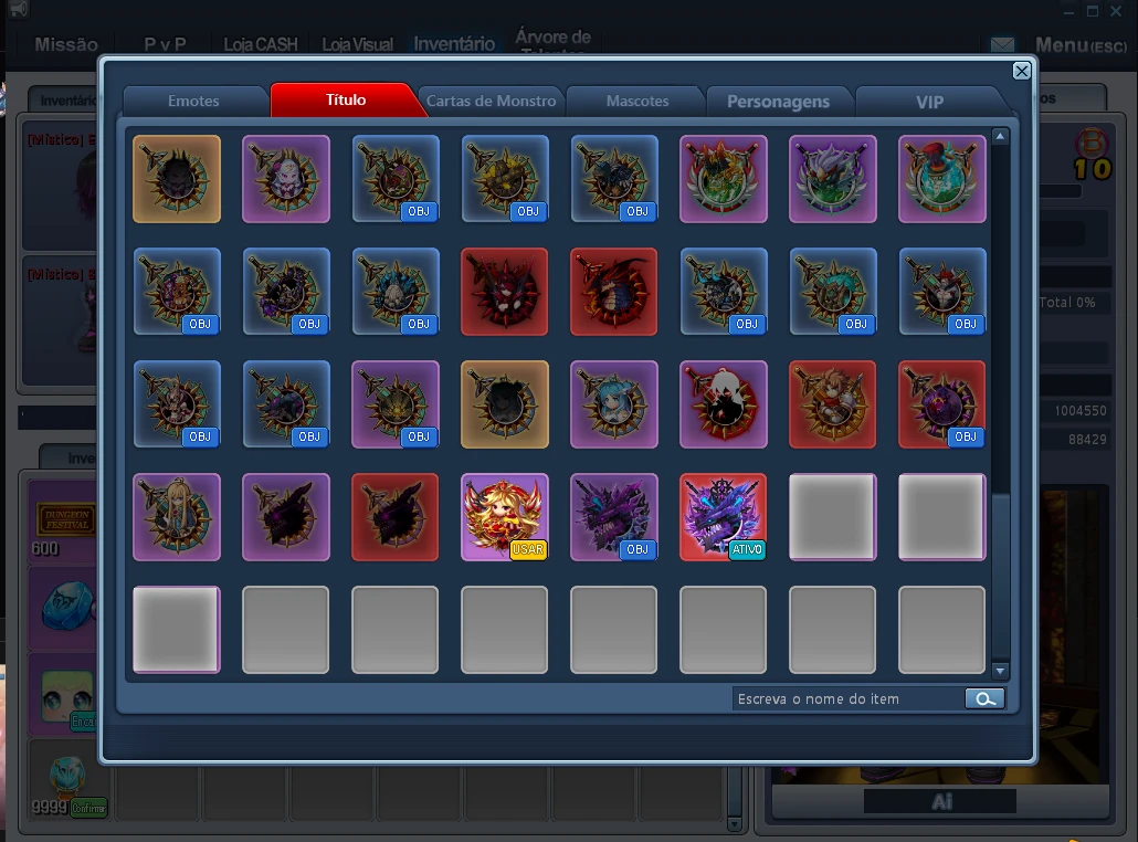 Painel de Itens Dentro do Inventário