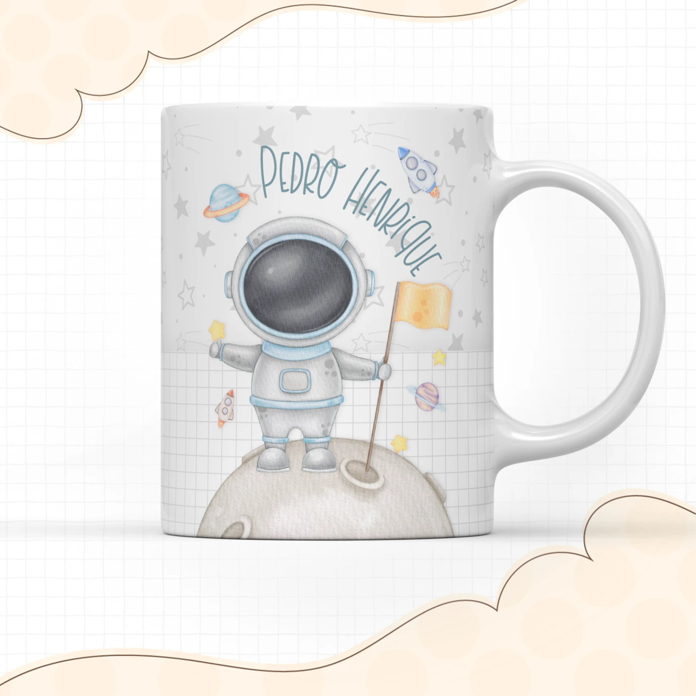 Kit Escolar Astronauta: Etiquetas/Caneca/Toalhinha de Mão
