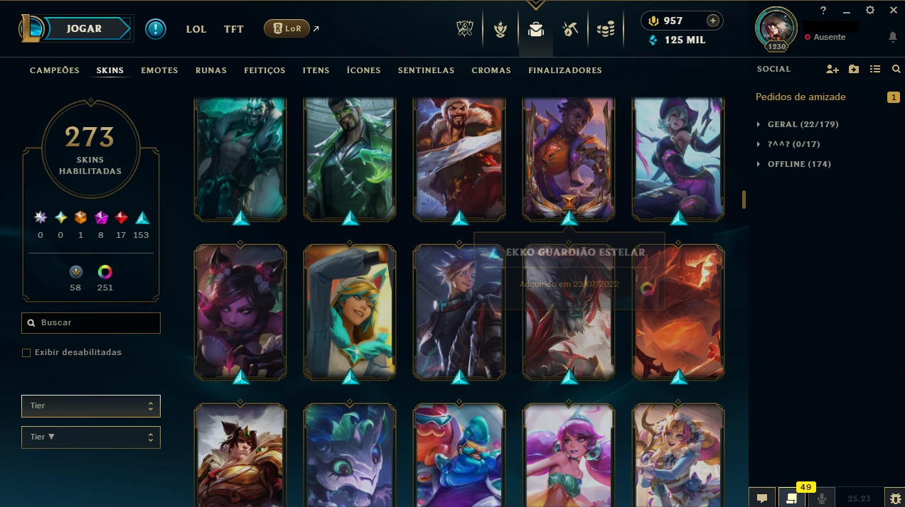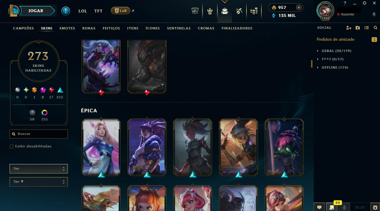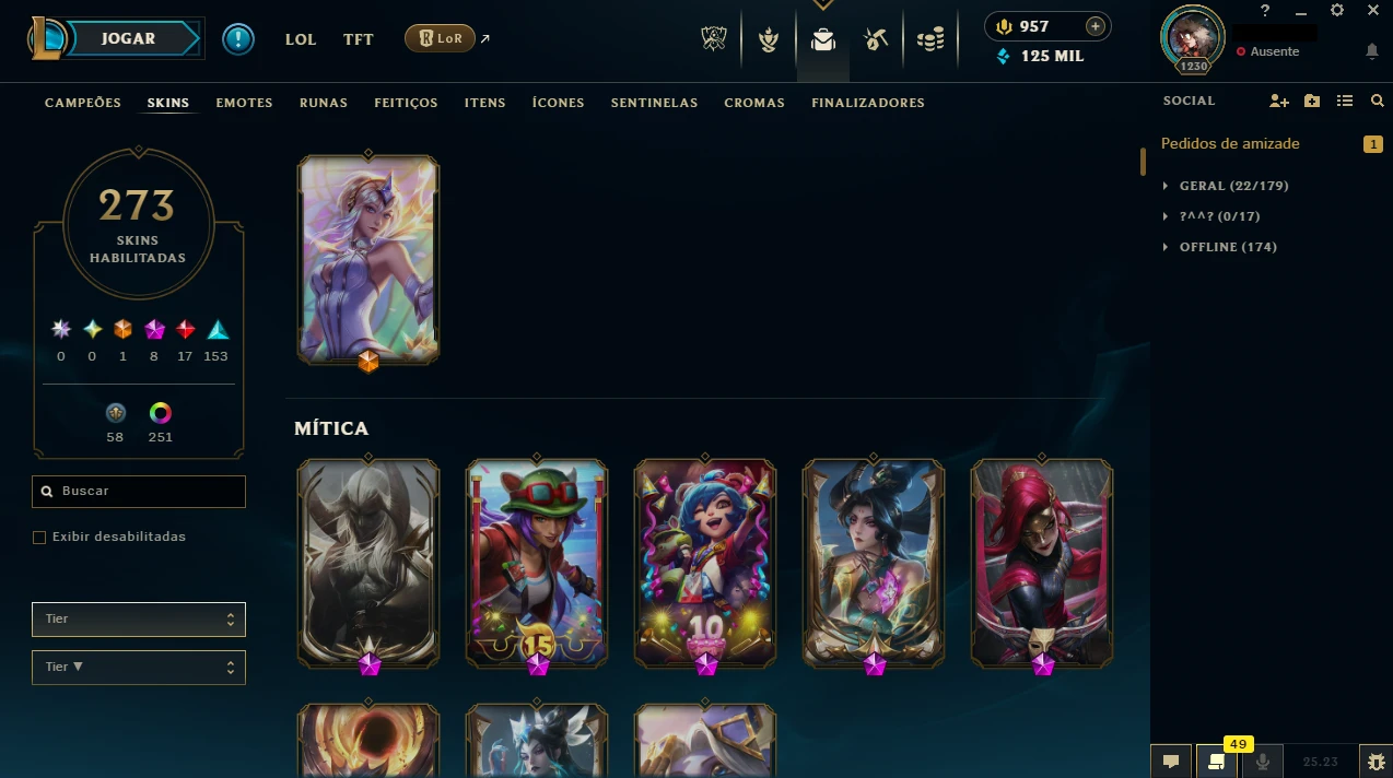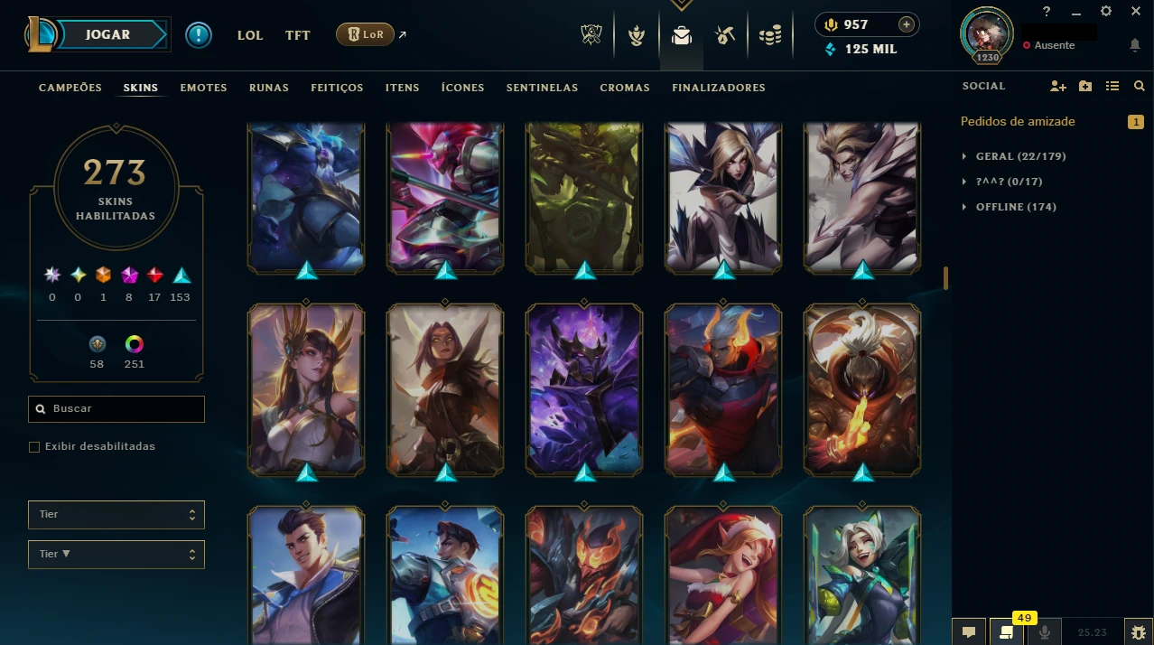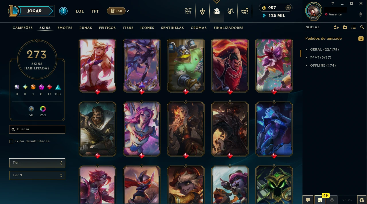 League Of Legends: 273 Skins | 258 Cromas | Todos Campeões