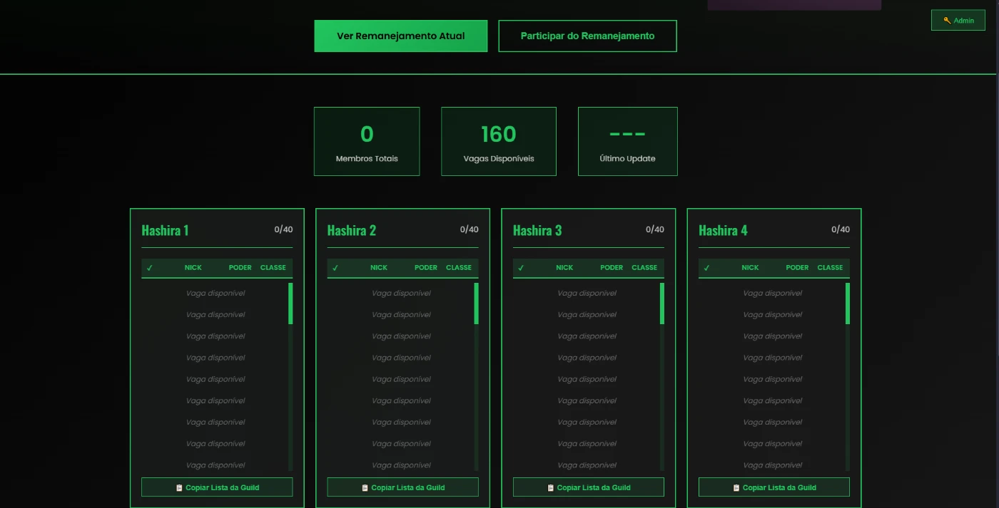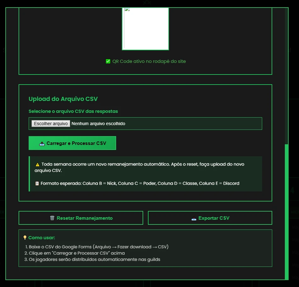Esta ferramenta foi desenvolvida para agilizar o processo de remanejamento de jogadores entre guilds, tornando a organização mais rápida e eficiente.