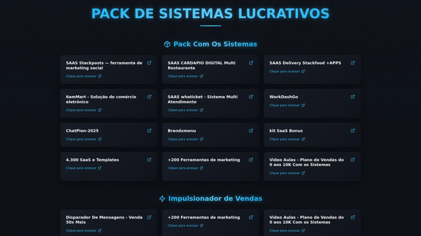 O Pack Sistemas Lucrativos foi criado para quem quer começar rápido, com estrutura pronta e foco total em resultado. 🚀