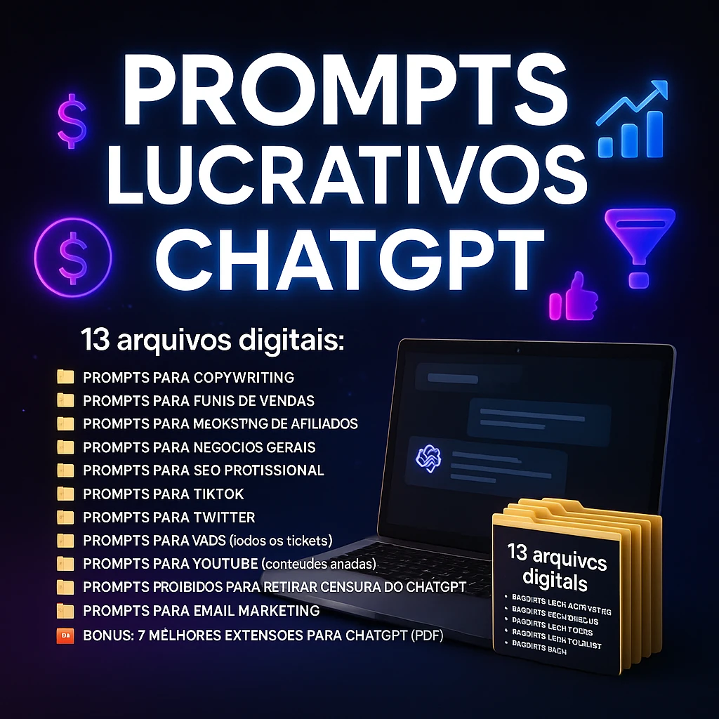 Pacote PROMPTS LUCRATIVOS para ChatGPT (13 Itens)