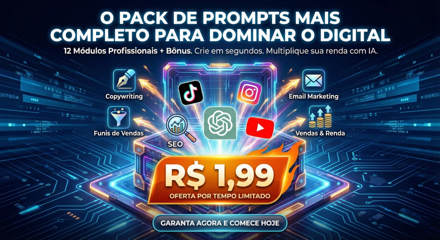 🚀 Domine o digital com o pack de prompts mais completo e valioso do mercado.