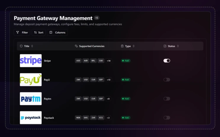✅ Depósitos e Saques Automáticos (PIX, Cripto, Gateway) — Total integração com sistemas automáticos.