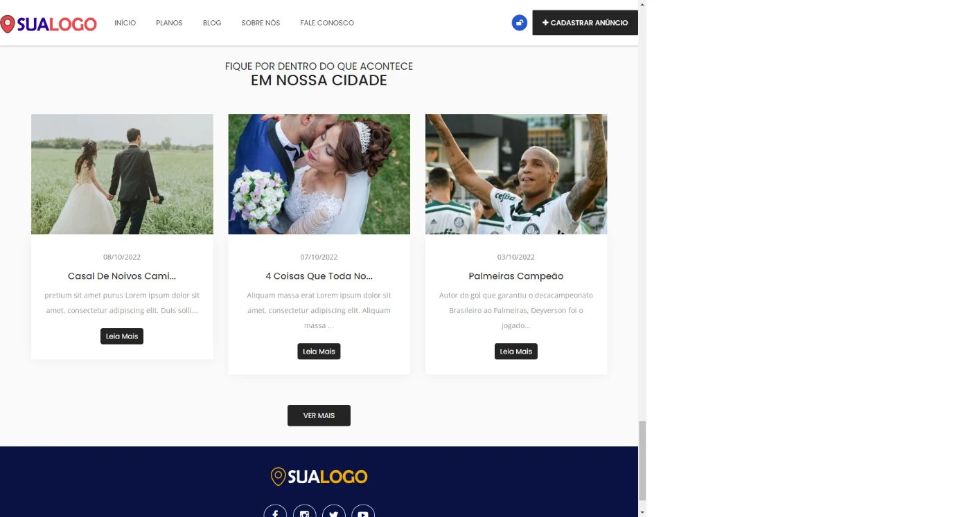 - Detalhes da empresa e páginas: sobre nós, termos e condições, política de privacidade, faq e Blog