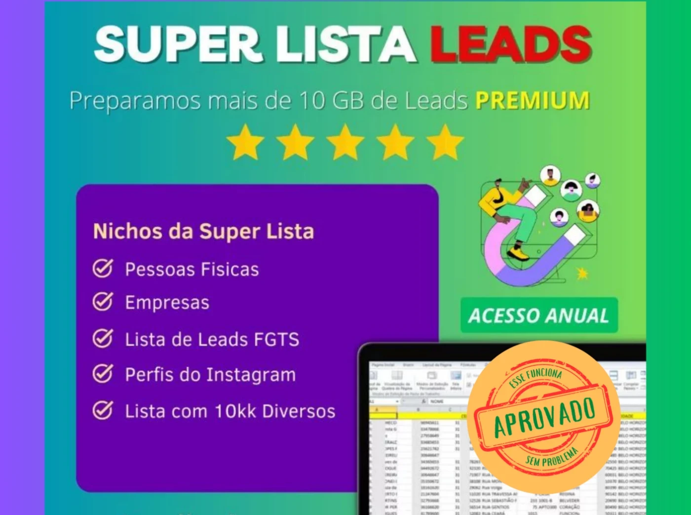 Apresentamos a Super Lista Premium – um verdadeiro tesouro com +10GB de leads segmentados de diversos nichos, pronta para turbinar sua estratégia de marketing e gerar resultados reais. 🚀💰
