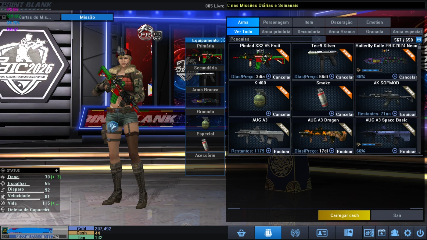 PASSES: BORA 12, NEON COM BUTTERFLY, HONEY BADGE MAS COM OS IDOLS REGATADOS, PASSE DA XM7 E AUG PERMA DE 30 BALAS DE CAIXA EVENTO.