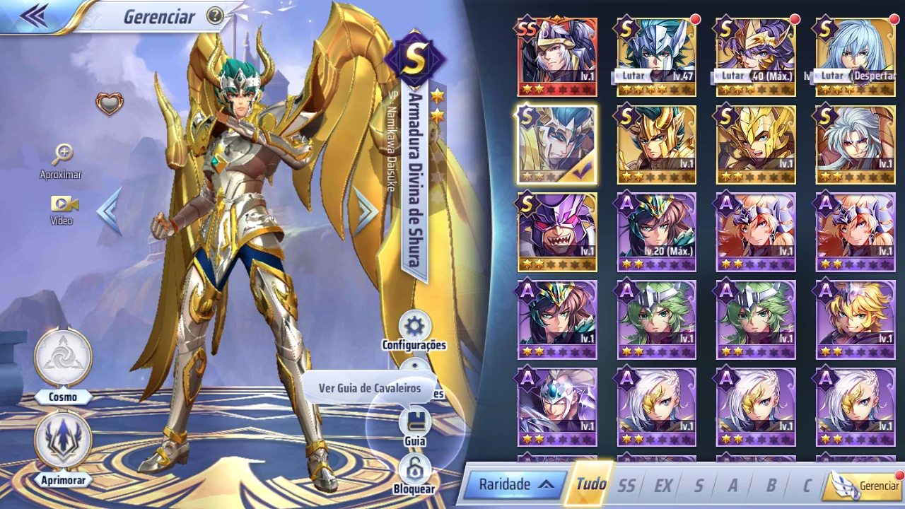 SERVIDOR A148 NVL 23 ( pode mudar) NÃO TEM GEMA PERSONAGENS: SHURA DIVINO / SUIKYO/ MILO DIVINO / ALBAFICA / DOHKO DE LIBRA COM ARMADURA DIVINA / SAGA MALIGNO / AQUERONTE - CARONTE/ oneiros A CONTA ESTÁ SEM VINCULO , Apenas login e senha pela Gtarcade (poderá adicionar um email secundário e telefone na conta)
