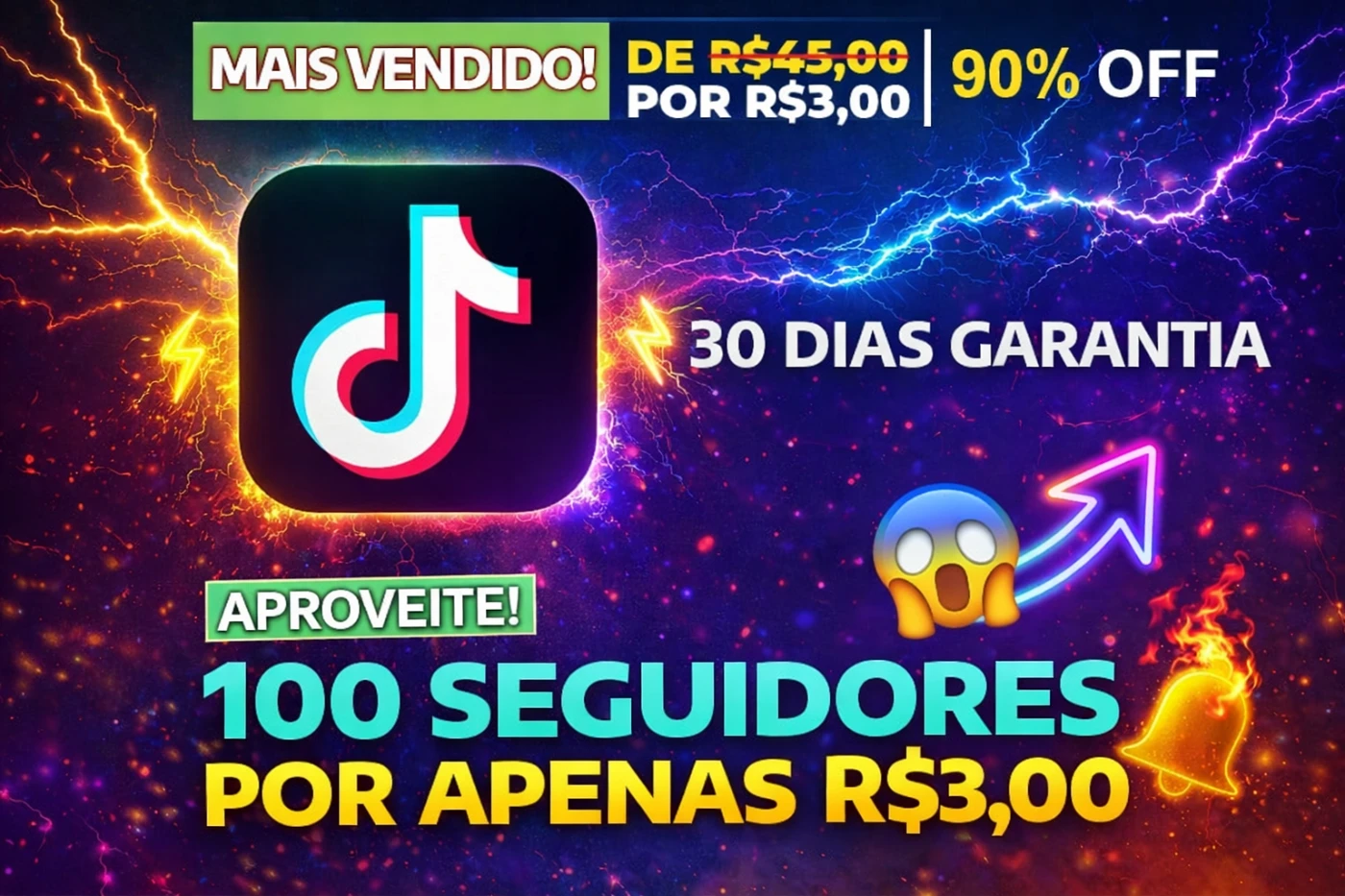 100 Seguidores TikTok por R$3,00 - Social Media