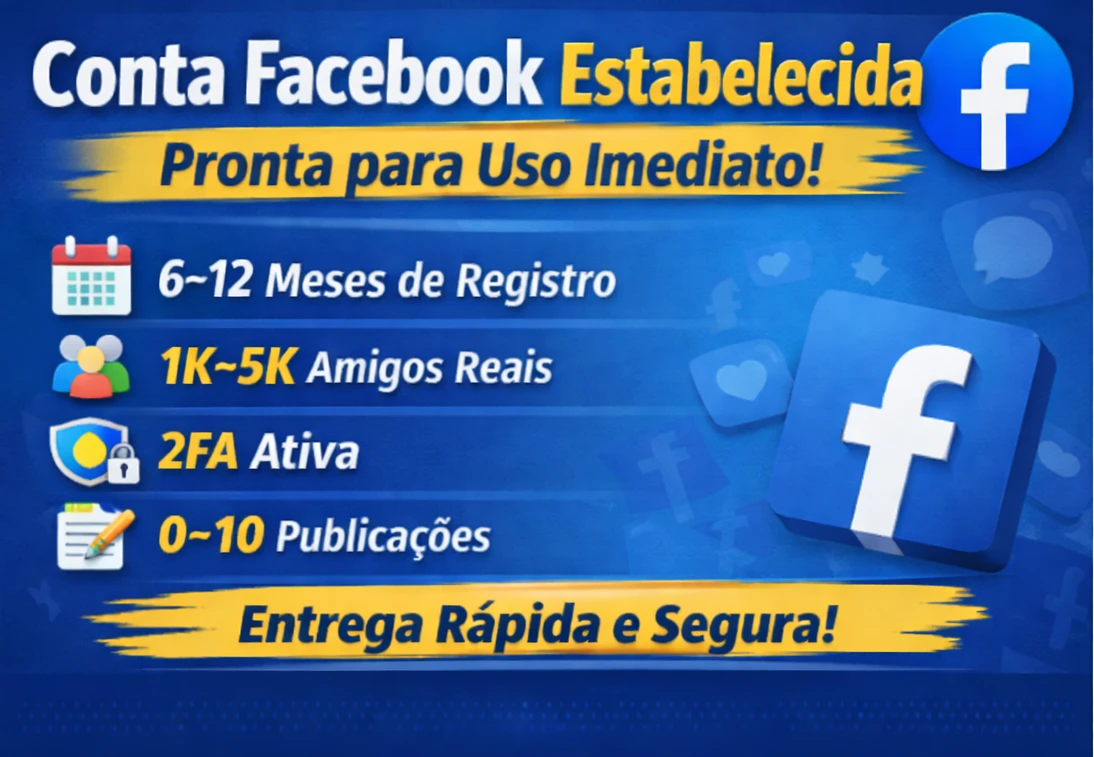 Conta Facebook 6–12 Meses|2FA Ativa|1K–5K Amigos|0–10 Posts