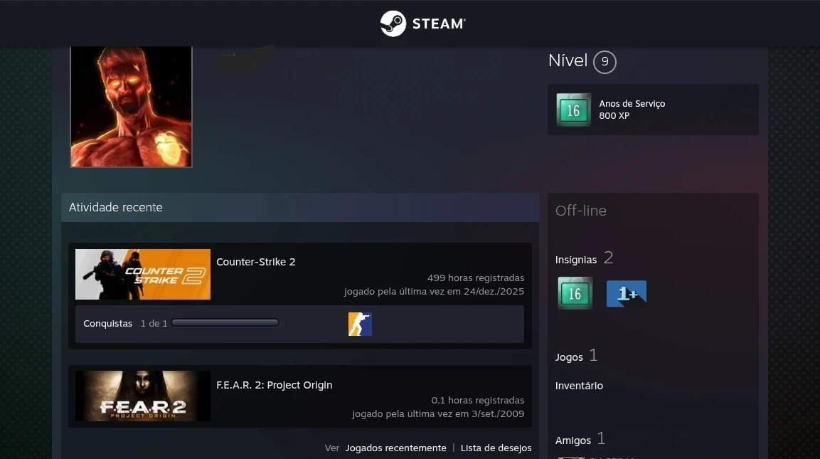 Conta Steam 16 anos Antiga