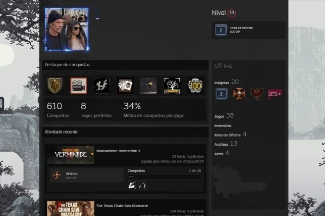 conta Steam 2 anos, LvL 19 pra sair logo.