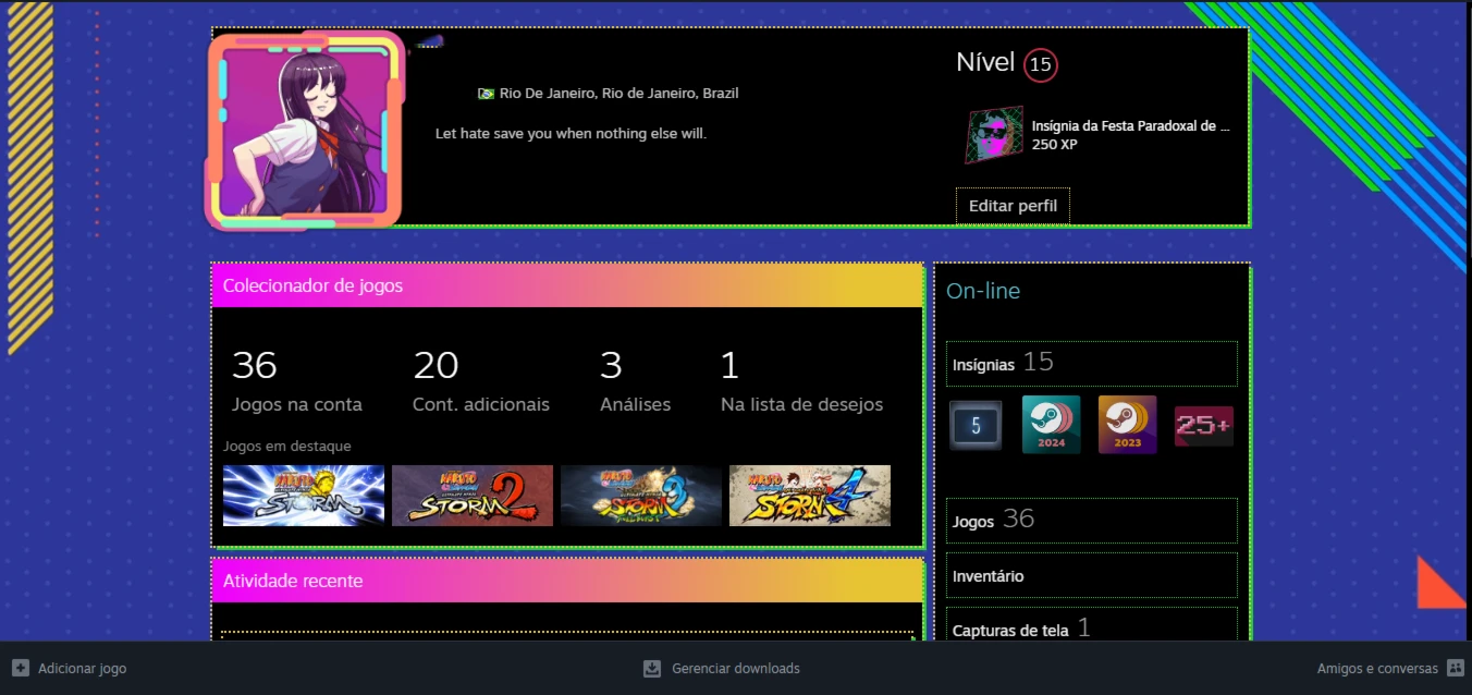 Conta steam lvl 15 - 5 anos de serviço + coleção naruto