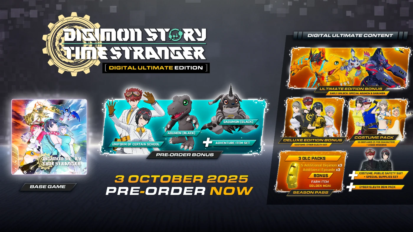 Digimon Story: Time Stranger é um jogo de RPG da franquia Digimon, desenvolvido pela Media.Vision e publicado pela Bandai Namco Entertainment.