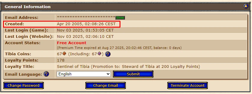 Conta 20 Anos Tibia