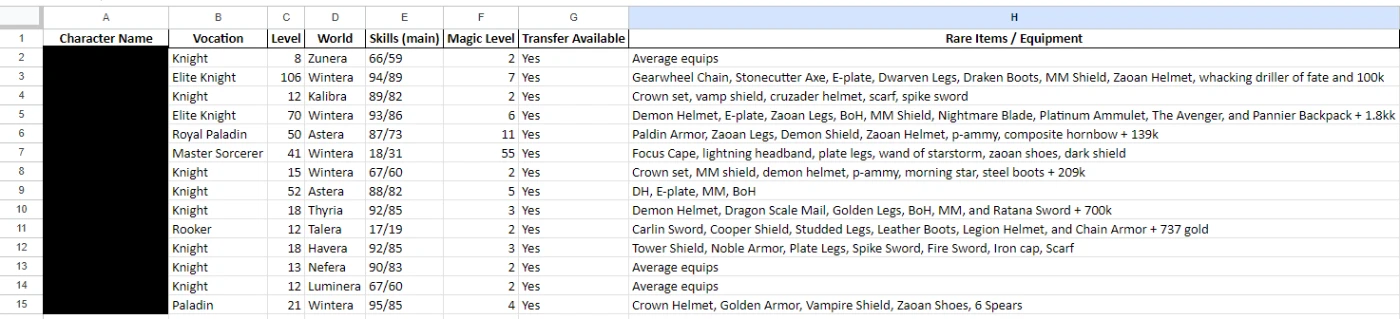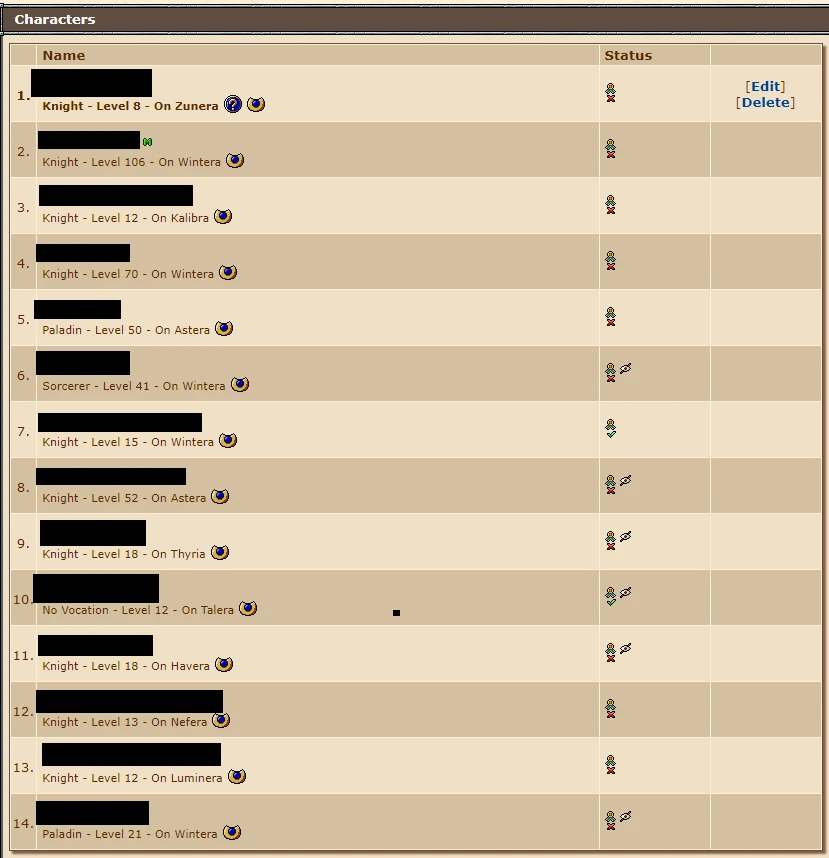 todos chars sem hunt ou nada, só pegar e upar