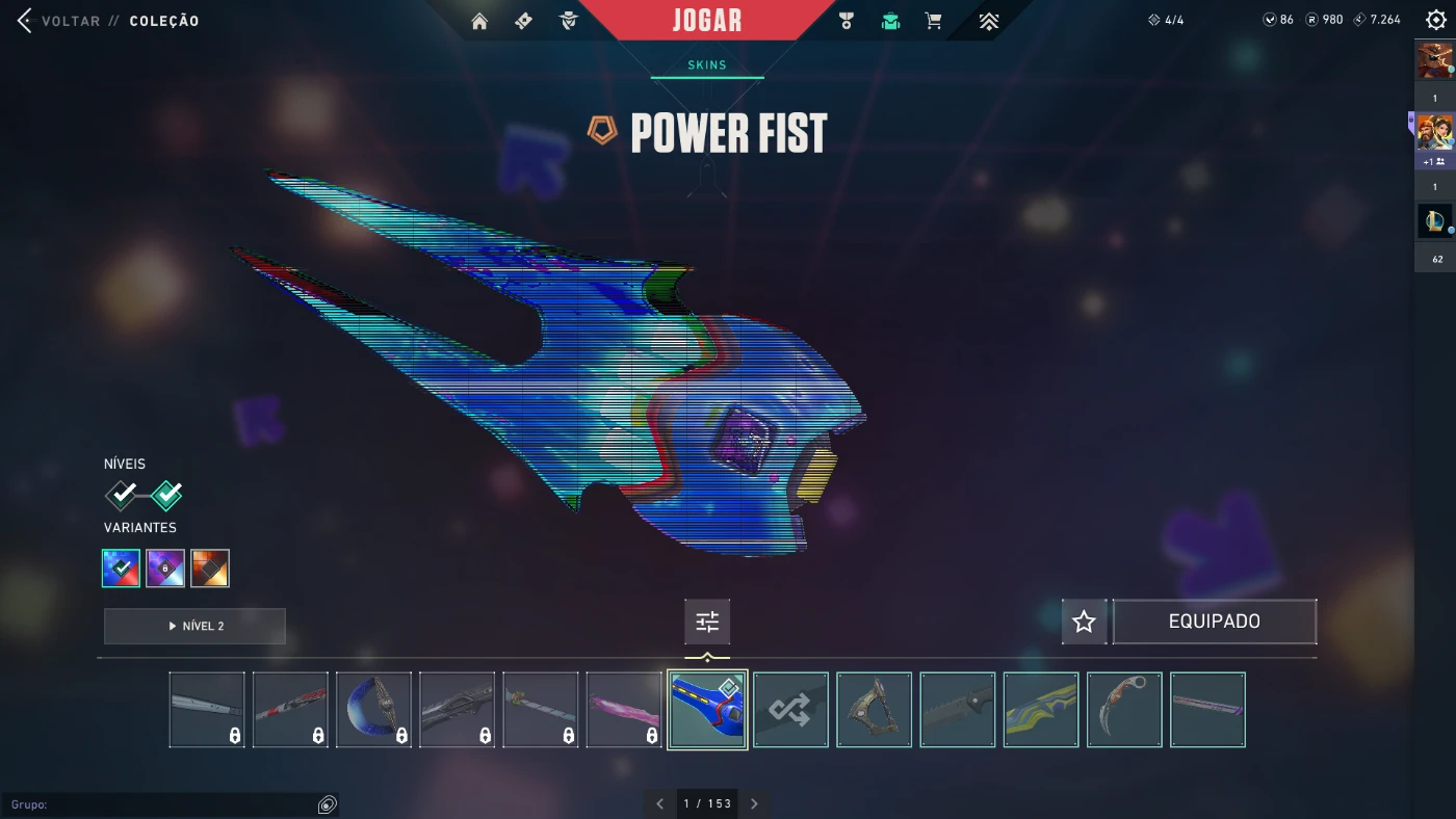 Também há a  primeira coleção Arcane completa (limitada e exclusiva), junto com a Xerife da Jinx. Tem a faca RGX, tem a faca Power Fist. Toda a coleção Radiant Entertainment System. Skins de Pahantom: Protocolo, Sublime, Radiant Entertainment System, e algumas de passe. Skins de Vandal são a Sublime e a Prelúdio do Caos