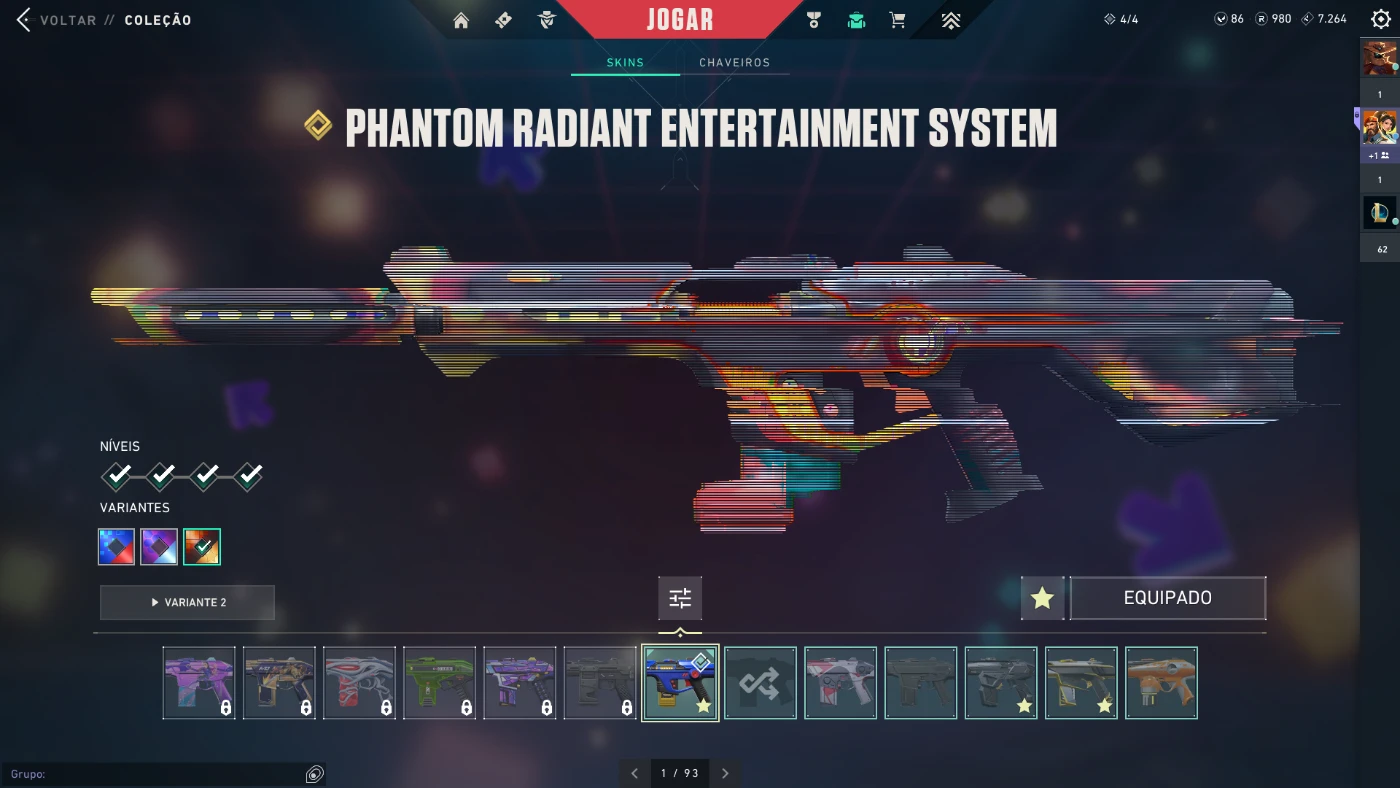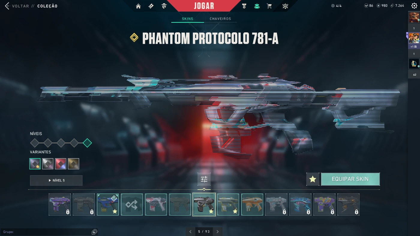 conta com diversas skins caras e raras
