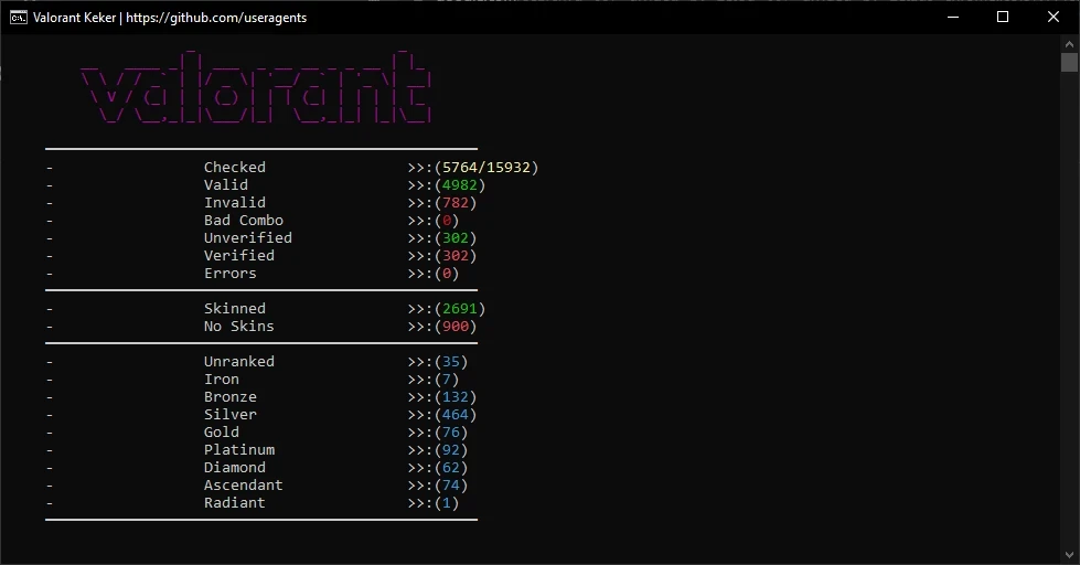 Com a combinação certa de checker e software de captura, você pode ter acesso a uma grande quantidade de contas NFA de qualidade rapidamente e se divertir muito no VALORANT!