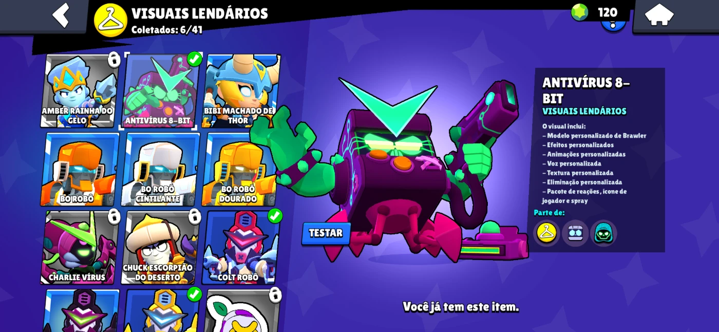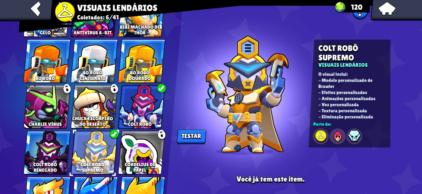 Conta brawl stars 3 lendários e com 6 skins lendárias!!