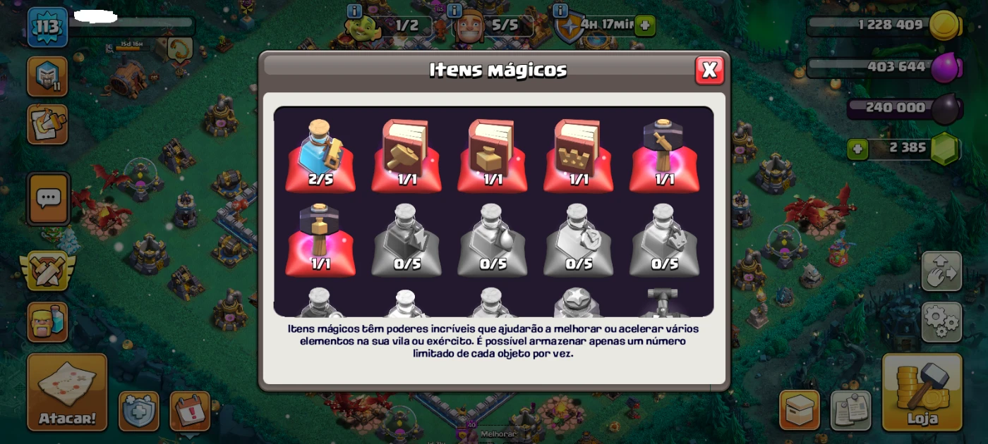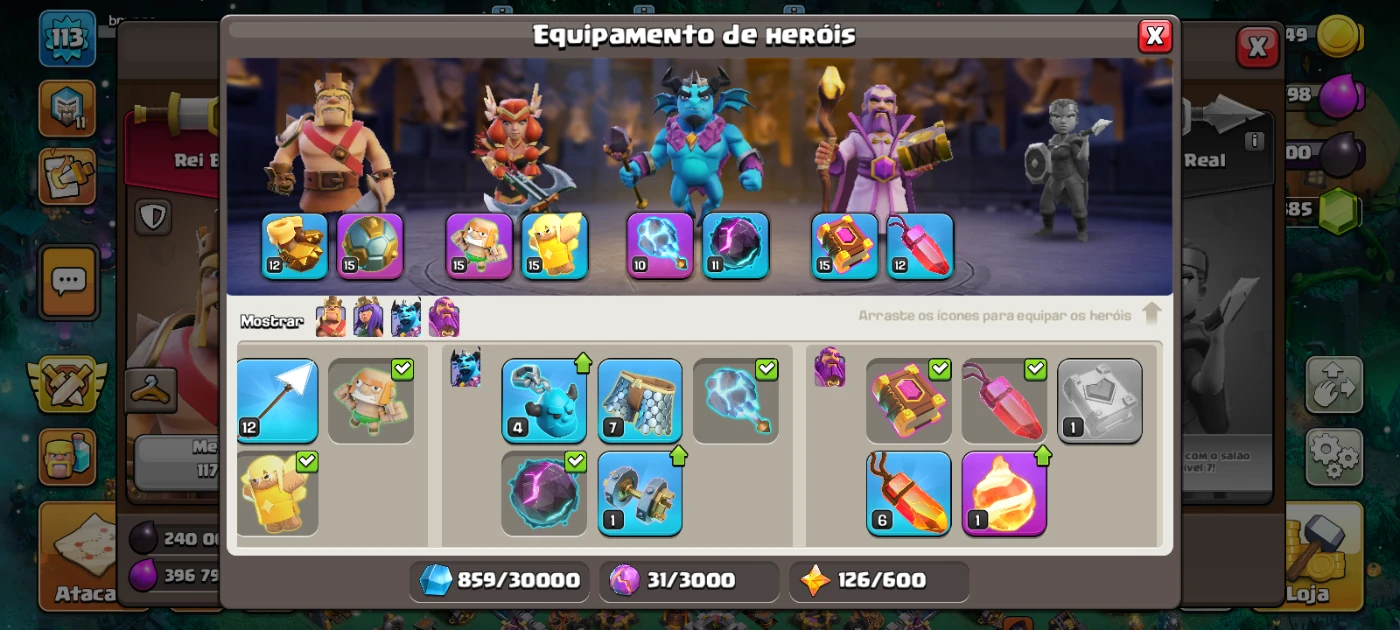 Cv12 Full - 2385 Gemas - Muitos Itens Mágicos - 7 Equips - Clash of Clans