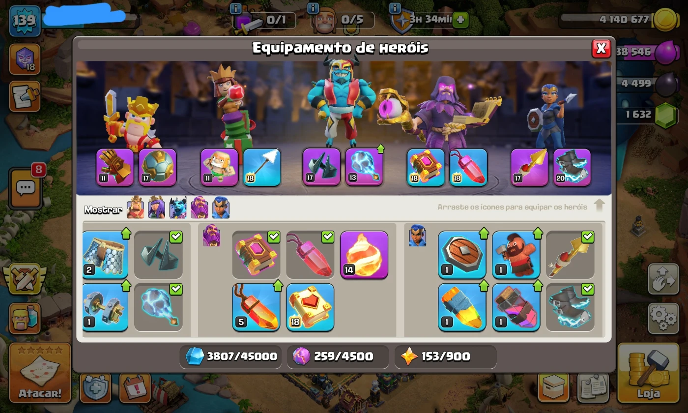 Cv15 quase full com 1600 gemas e equipamentos épicos - Clash of Clans