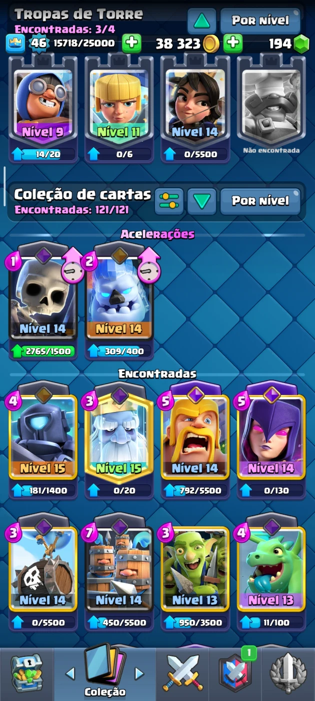 a conta contém algumas cartas com 3 ou 2 fragmentos de evolução.