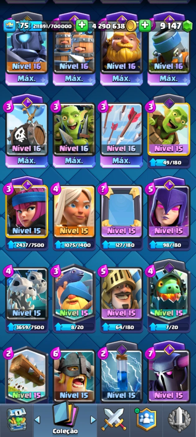 Clash Royale Torre 16, Cv75, 9k+💎, 4kk+💰, 12K+🏆