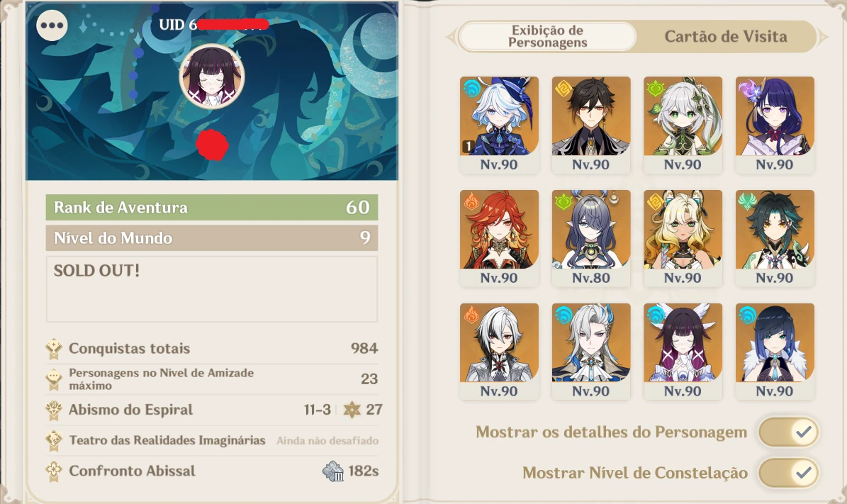 Está procurando uma conta pronta para dominar o conteúdo endgame e brilhar no Spiral Abyss? Esta conta foi cuidada com muito carinho desde 2021, focada em eficiência, meta atual e progressão sólida.