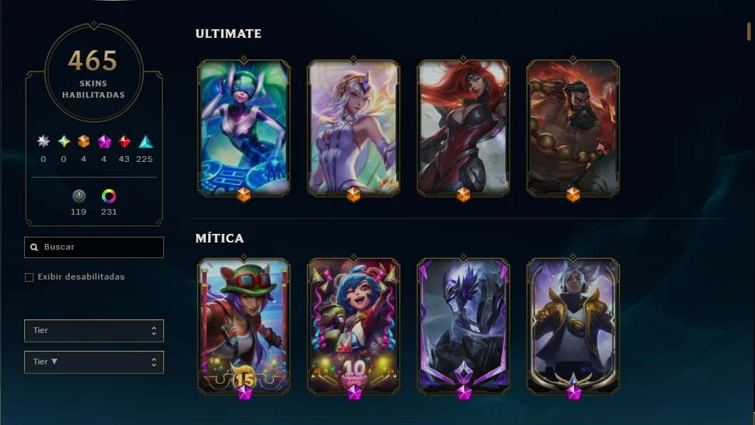 Conta antiga (meados de 2013~14) Com gastos entre 2400 e 2600 (teve gastos por fora também) Com comprovante da própria Riot games! Com quase 500 skins, algumas skins legados, quase todas lendárias, com exceção da porcaria da samira.