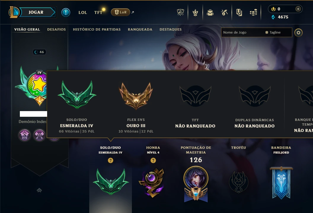 Esmeralda 4 com 60 Champs e 2 Skins - League of Legends LOL