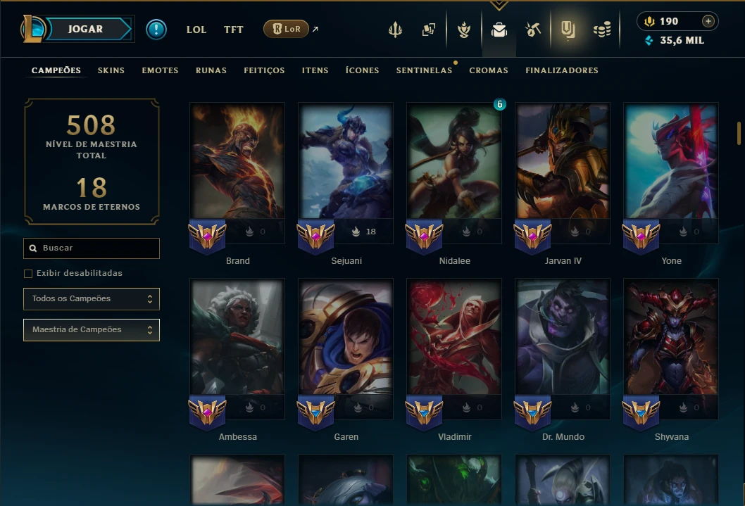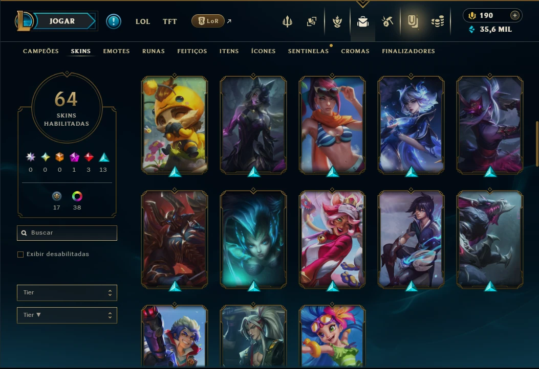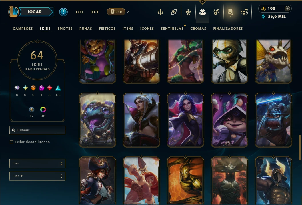 Mestre com TODOS os Champs e 64 Skins ( 208 PDL )