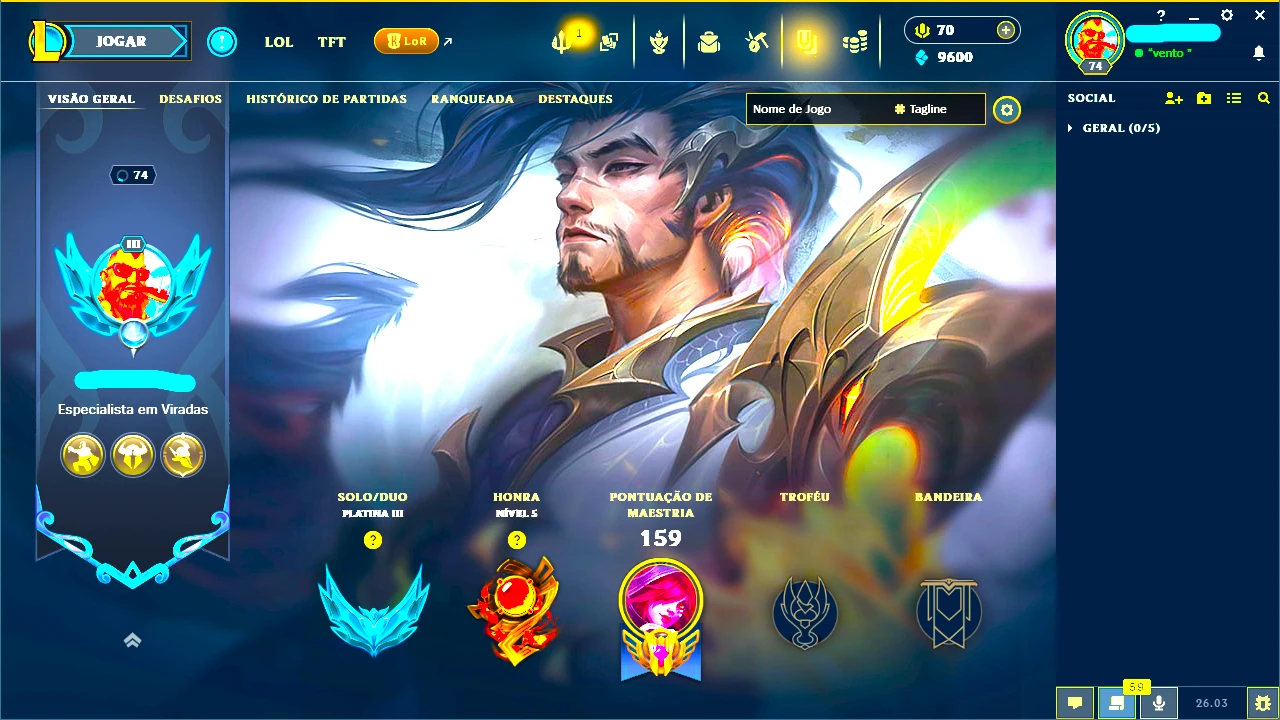 Conta Nfa + Platina 3 77 Pdls + Yasuo Dragão Lendária !!! - League of Legends LOL
